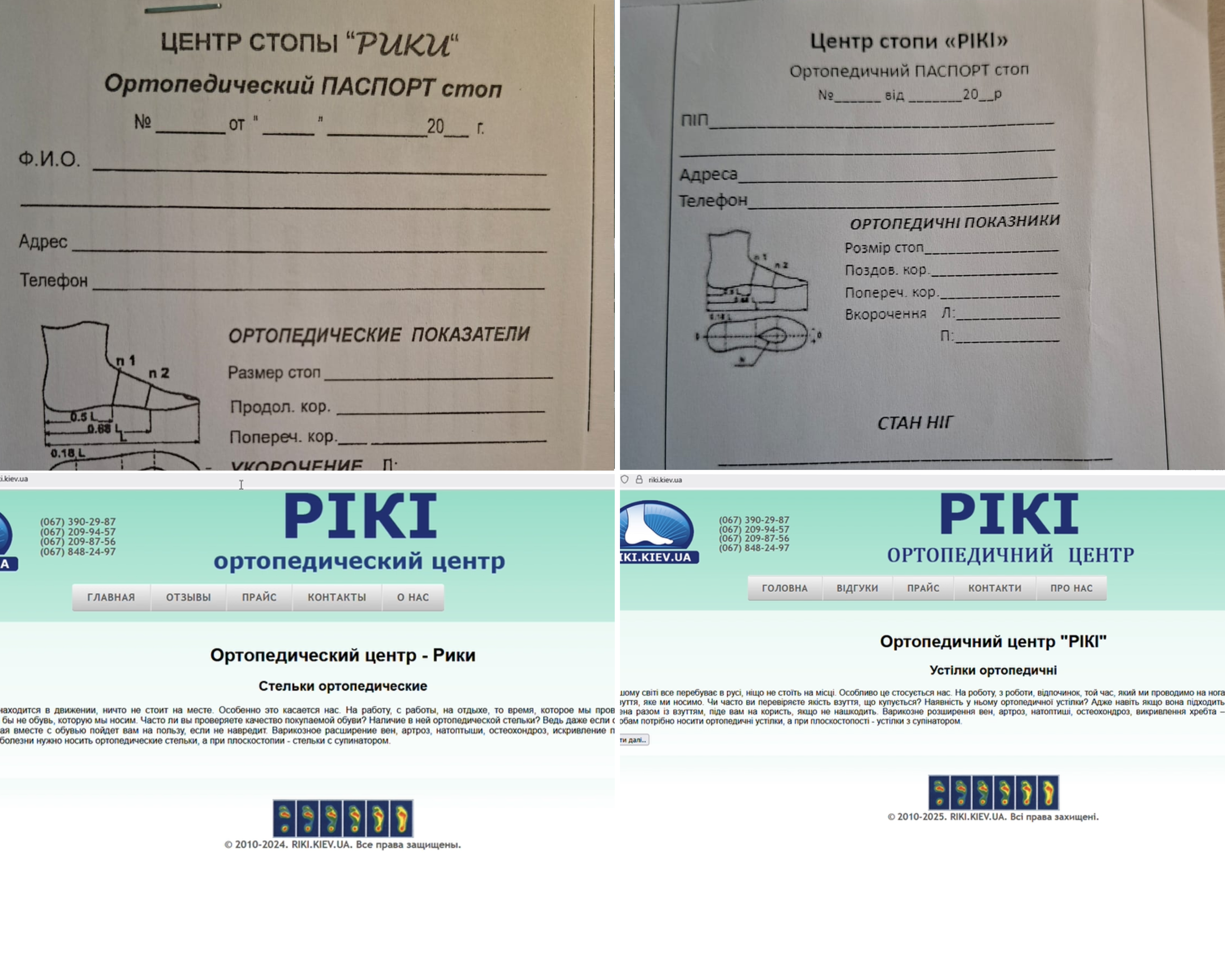 ▪ Ортопедичний центр (м. Лівобережна). У межах держконтролю встановлено два порушення: вебсайт функціонував виключно російською мовою, а споживачам видавалися ортопедичні паспорти недержавною мовою. Протягом місяця суб’єкт господарювання усунув порушення - сайт українізовано, а документацію перекладено.