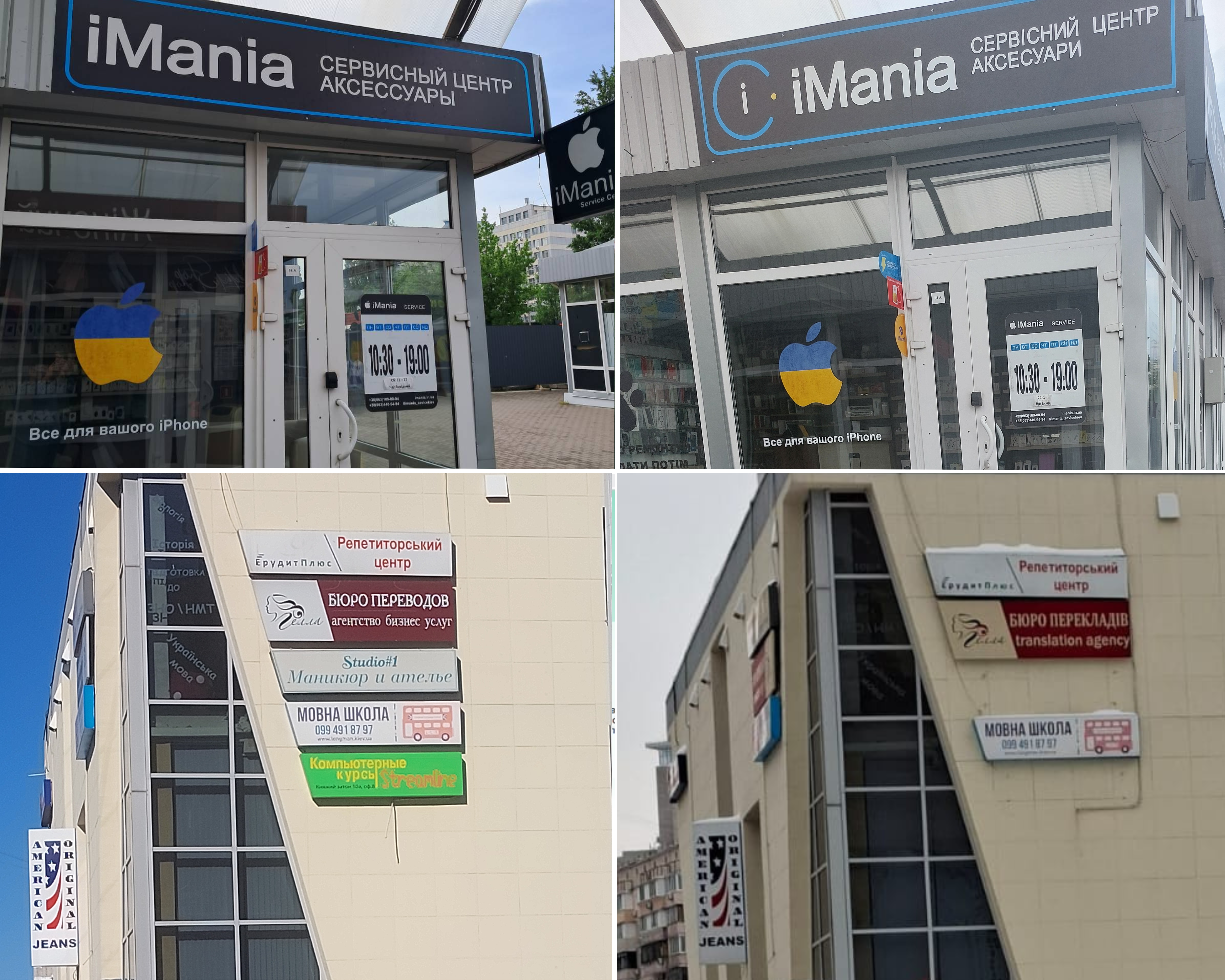 ▪ Соцмісто (Київ). Сервісний центр протягом 7 днів замінив російськомовну вивіску на українськомовну.