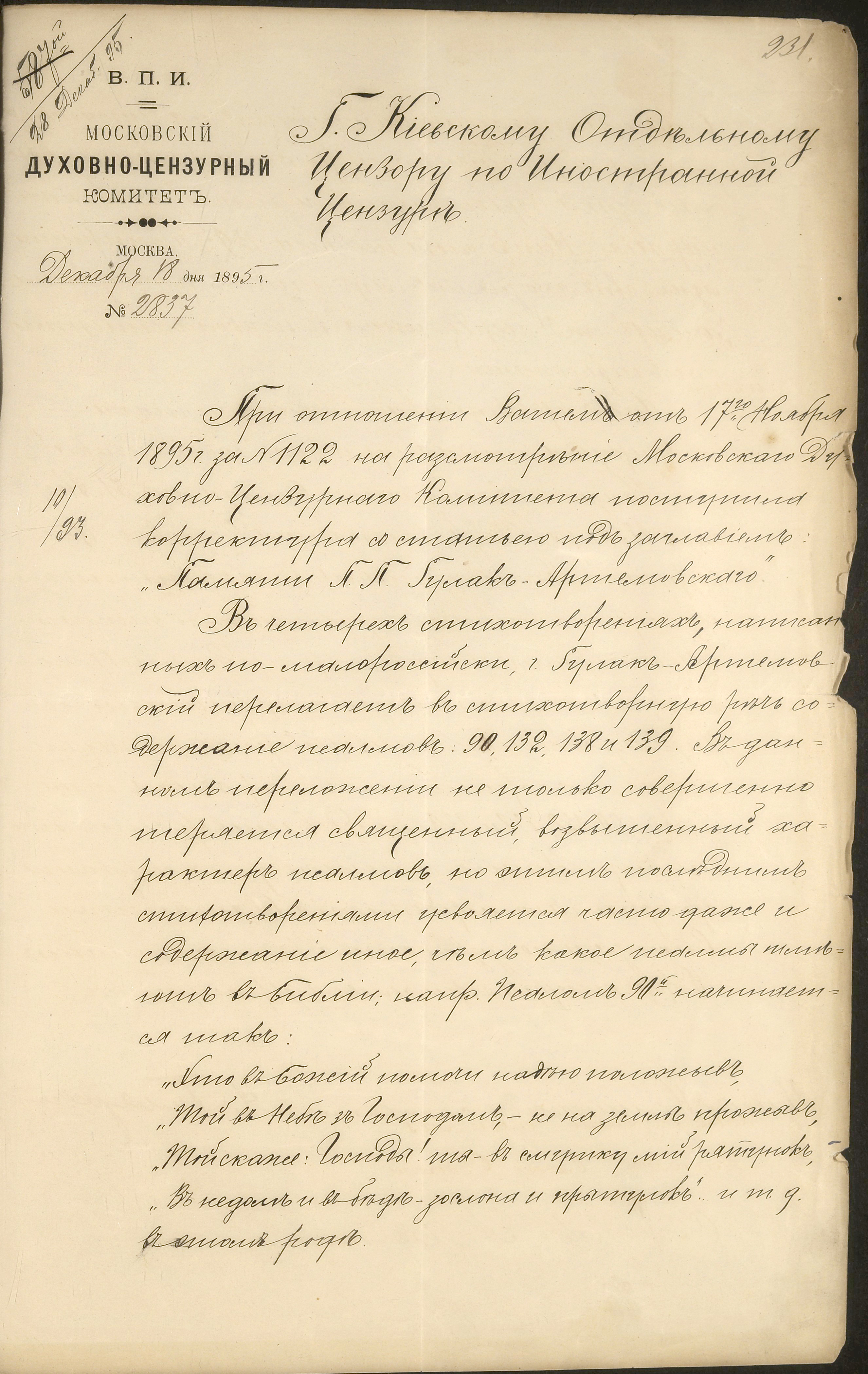 1895 р., грудня 18. – Висновок Московського духовно-цензурного комітету,