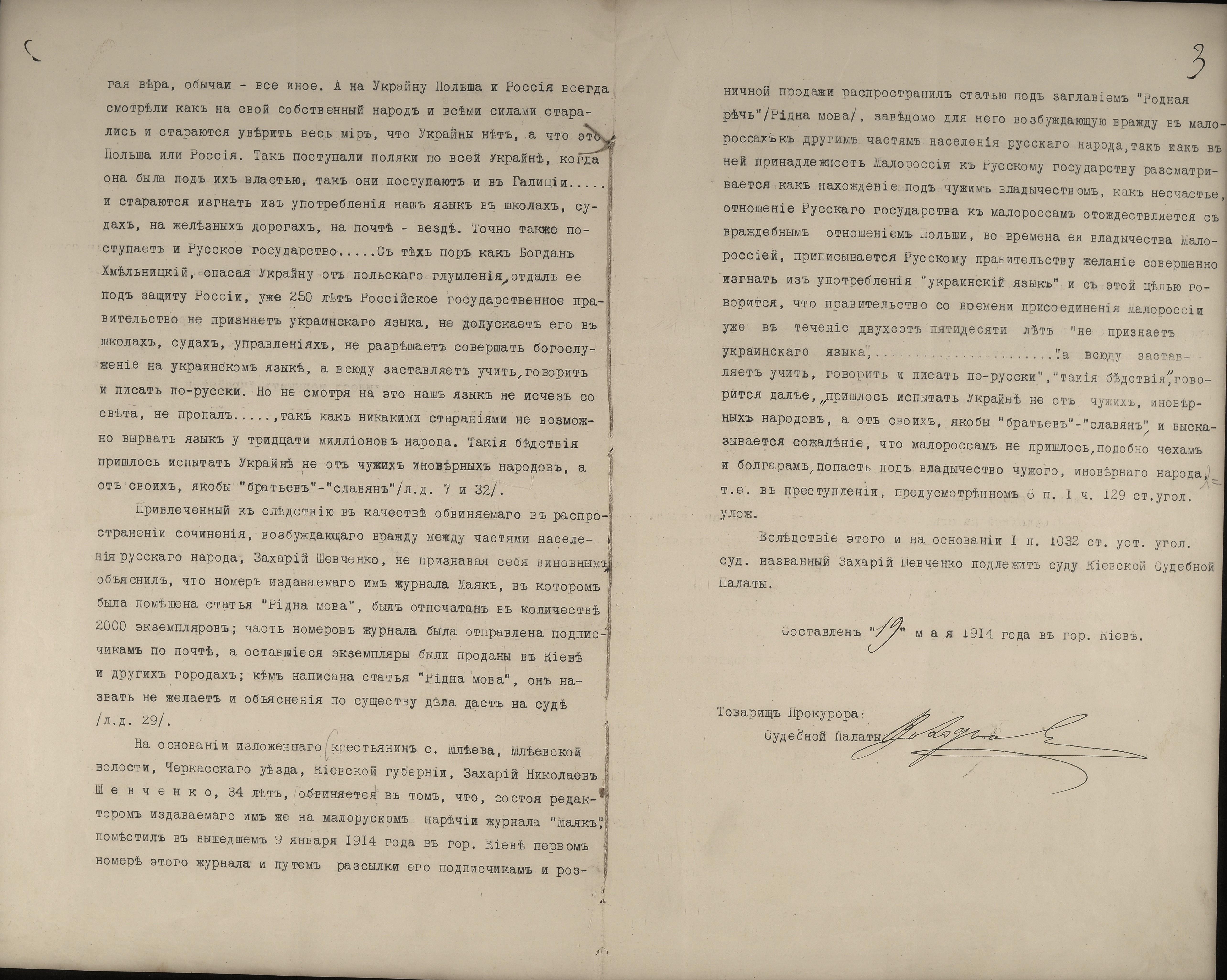 1914 р., травня 19. – Обвинувальний акт Київської судової палати у справі видавця