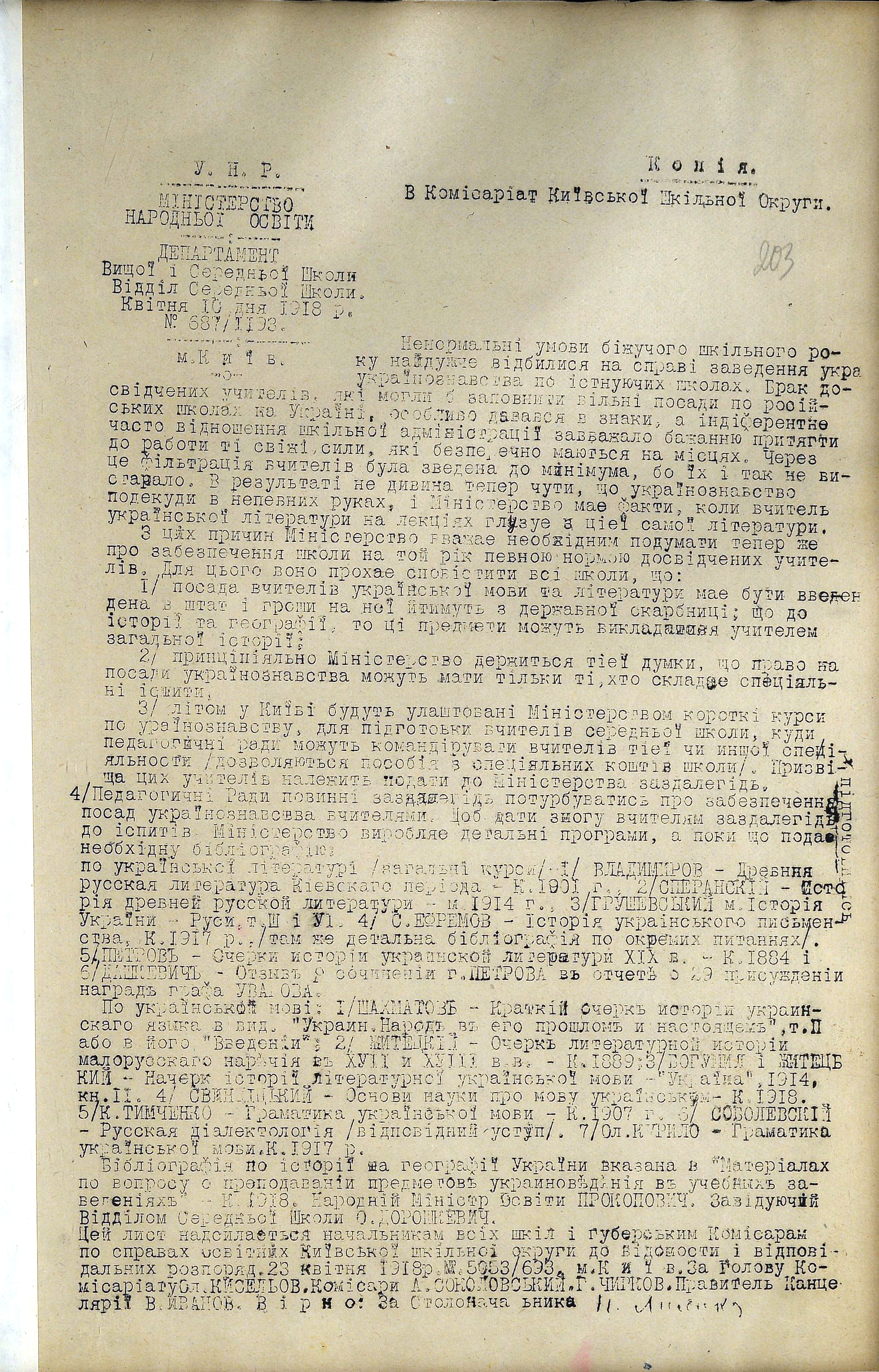 ЦДІАК України, фонд 707, опис 311, справа 1, аркуш 203.