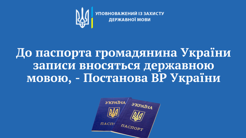 Сьогодні, 23 жовтня, Верховна Рада України прийняла Постанову (№13369), відповідно до якої до паспорта громадянина України у вигляді паспортної книжечки записи вносяться виключно державною мовою.