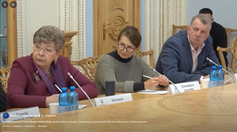 Керівник Секретаріату Уповноваженої із захисту державної мови Юрій Зубко та представниця Уповноваженої Єлизавета Сачура взяли участь у нараді щодо українізації українського національного законодавства, що відбулася під головуванням Голови Верховної Ради України Руслана Стефанчука.